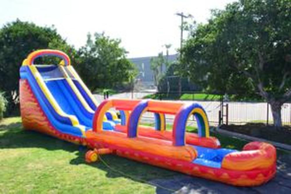 Our tallest and coolest waterslide. Climb up the ladder, slide down and cool off through the slip and slide and make a splash at the pool at the end.