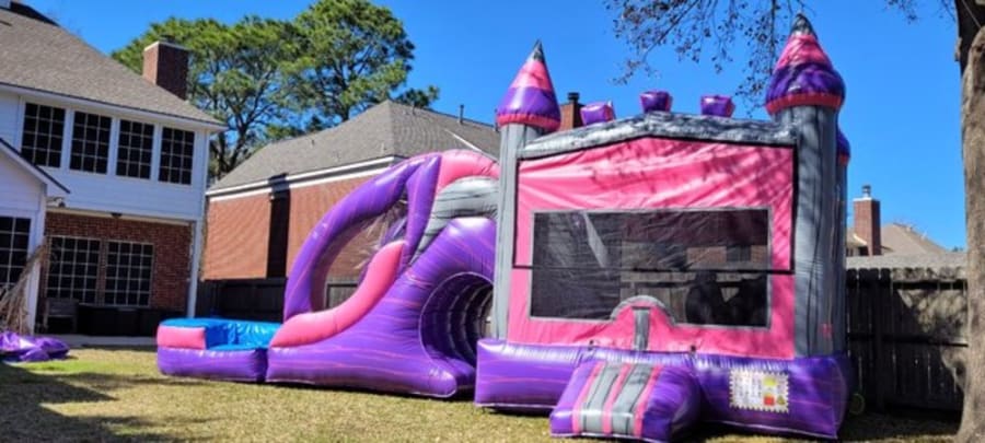 This combo features a 13x13 bounce house area with an 8-foot slide and a pool at the end.