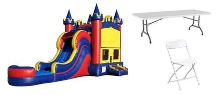 Kings Jump and Slide (36Lx13Wx16H) (2) 6 ft. rectangular tables (16) white foldable chairs